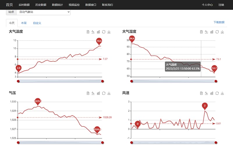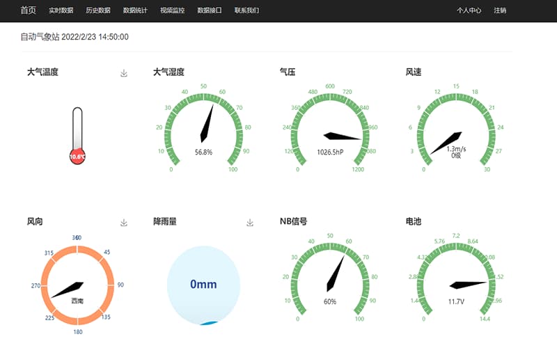 4、气象监测系统自带自动气象站系统、可使用云平台实现网页查看气象数据,手机电脑等电子设备,实时查看,方便快捷;
