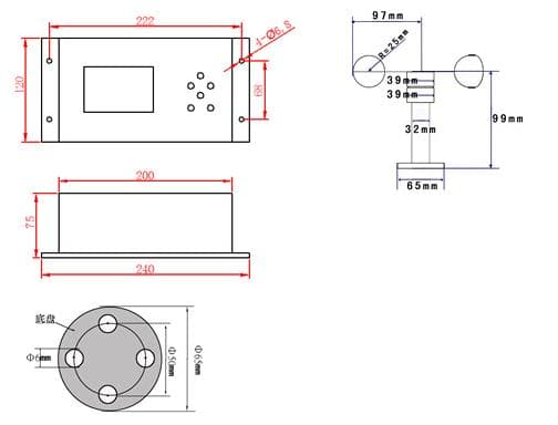 | 风速传感器技术参数 | 启动风速<0.4m/s;测量范围:0~60m/s分辨率:0.1m/s;测量精度:0.4+2%×实际风速 |